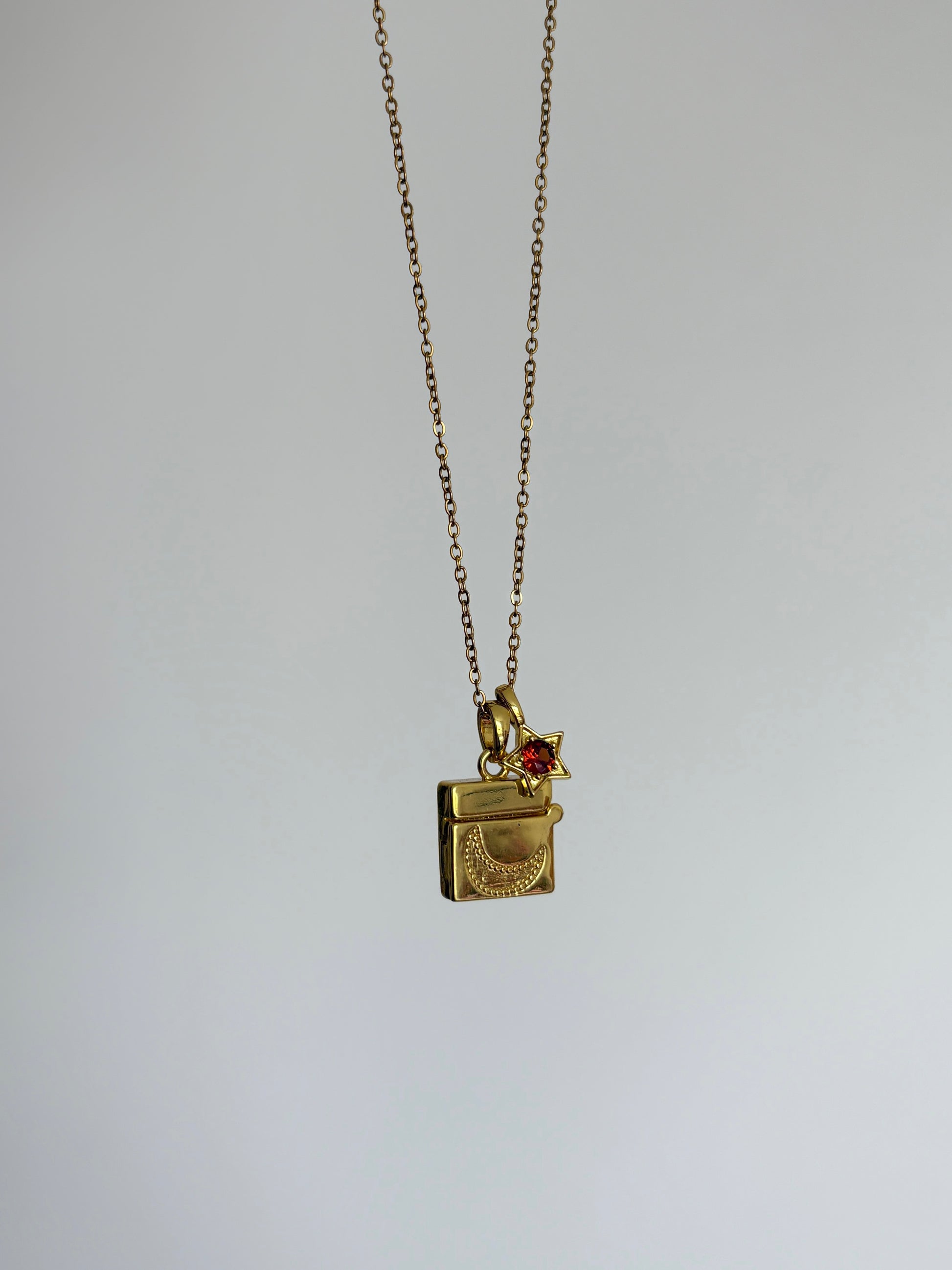 Resistente cadena de titanio 18k waterproof e hipoalergénica con dije de relicario con forma de buzón chapado en oro.