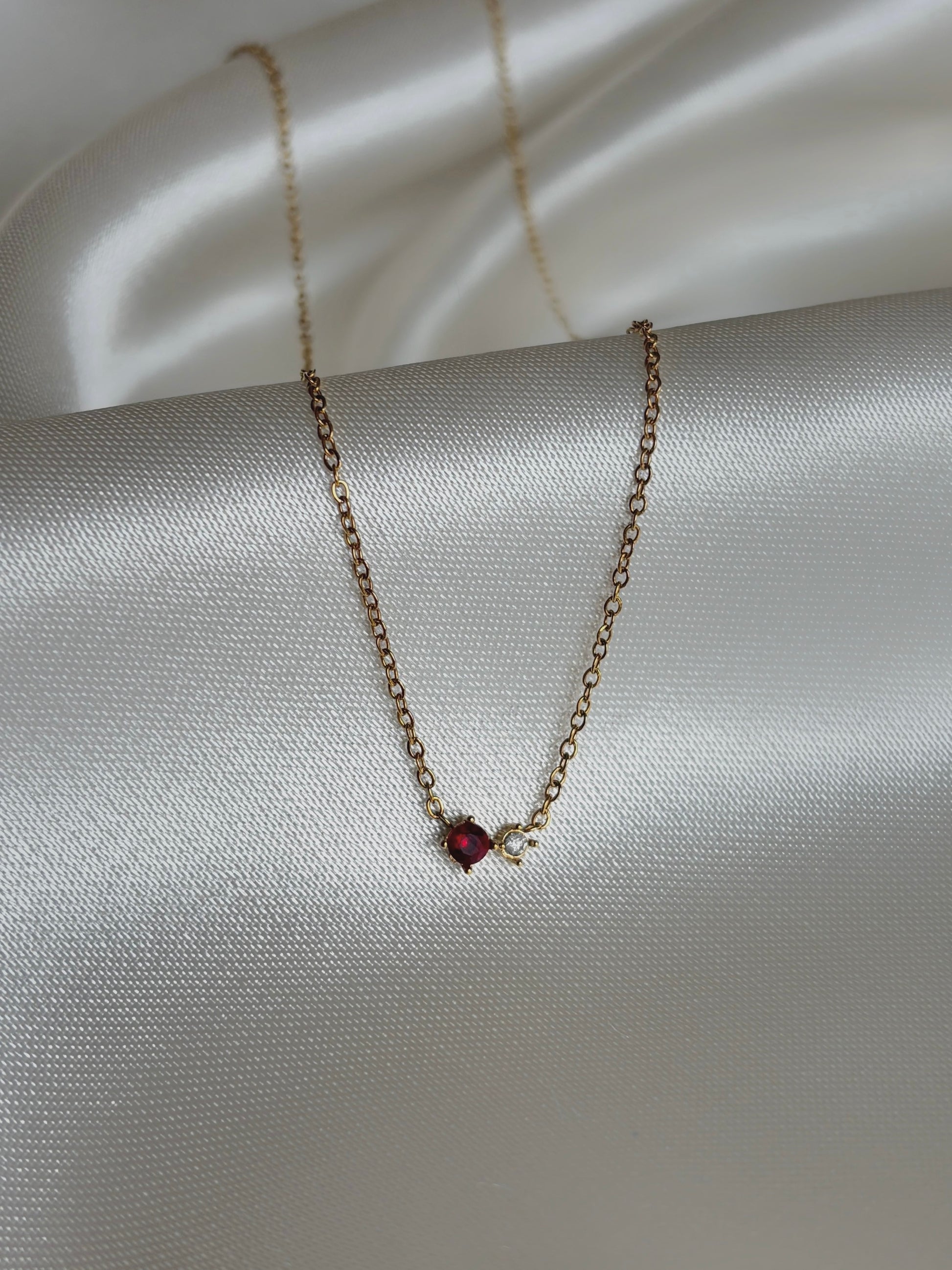 Fina cadena de titanio 18k waterproof e hipoalergénica con delicado dije con circonia roja y blanca.