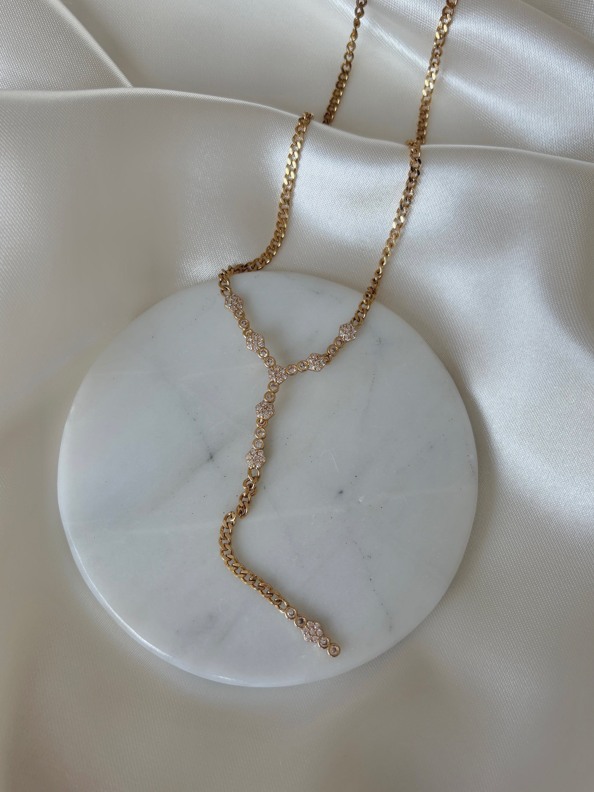 Resistente cadena chapada en oro 18k con delicadas flores e incrustaciones de circonia.