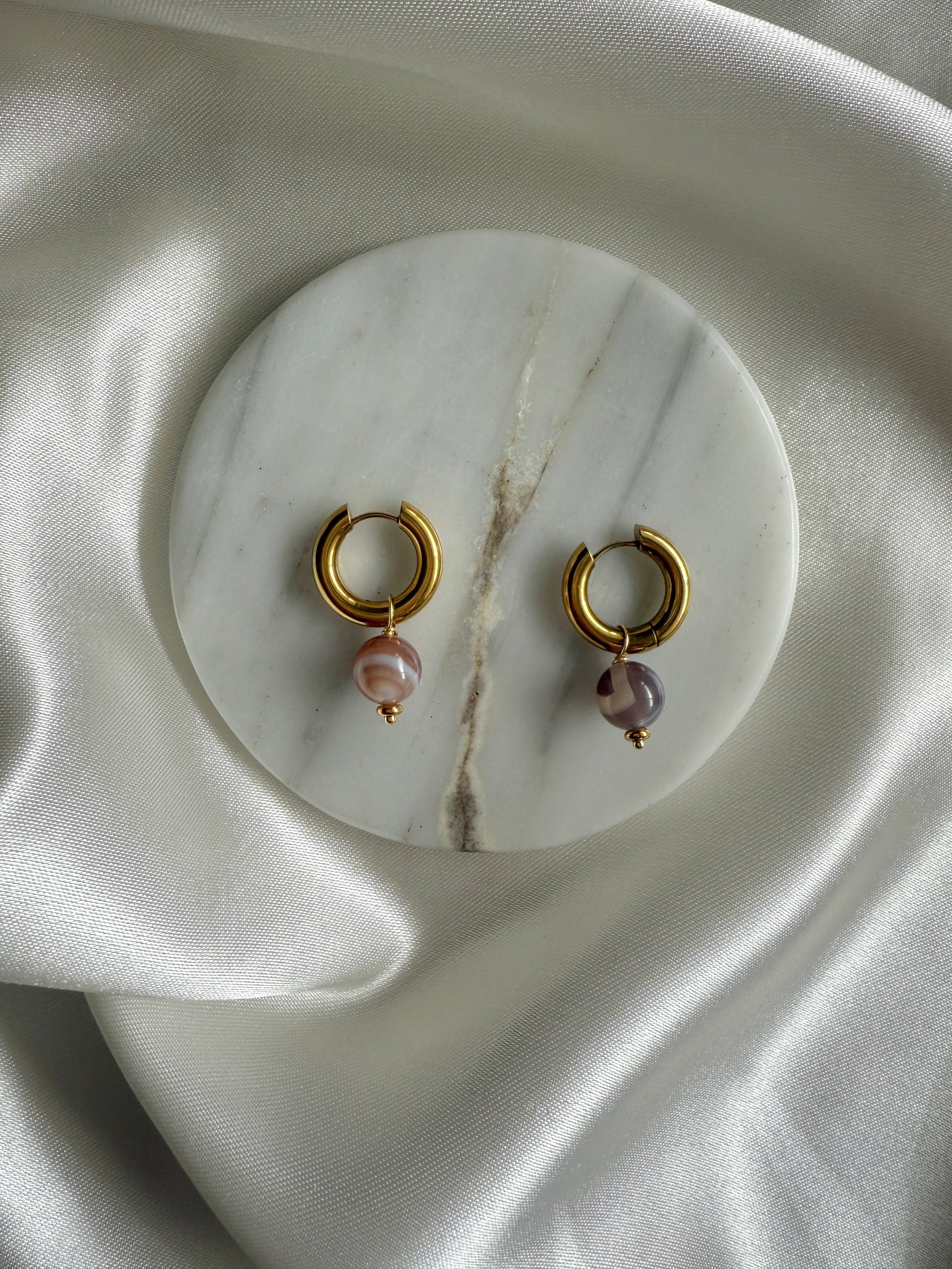 Hoops de titanio 18k waterproof e hipoalergénicos, especial para pieles sensibles con ágata botswana.