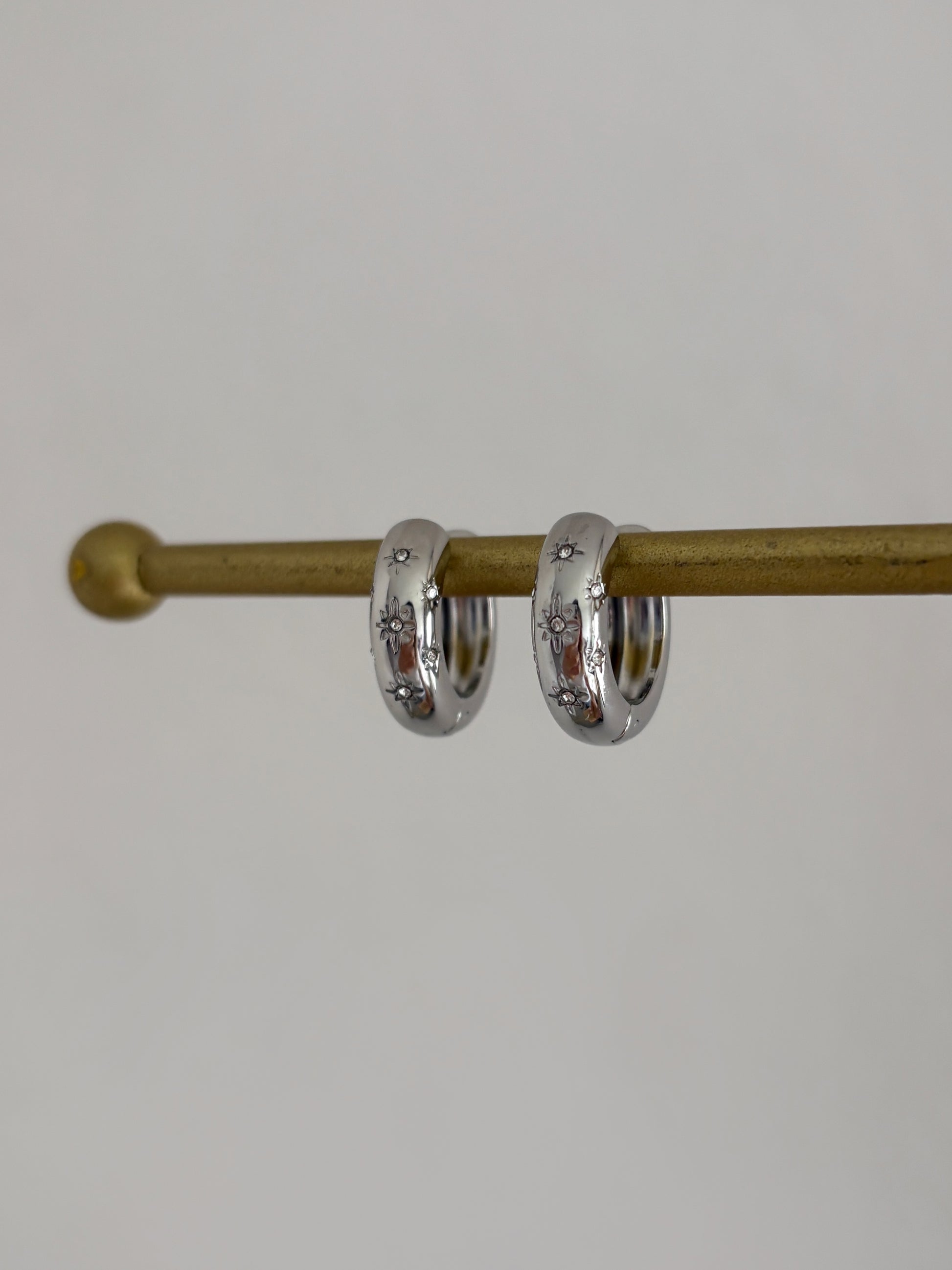 Hoops de titanio, waterproof e hipoalergénicos con destellos estilo miel, ideales para pieles sensibles.