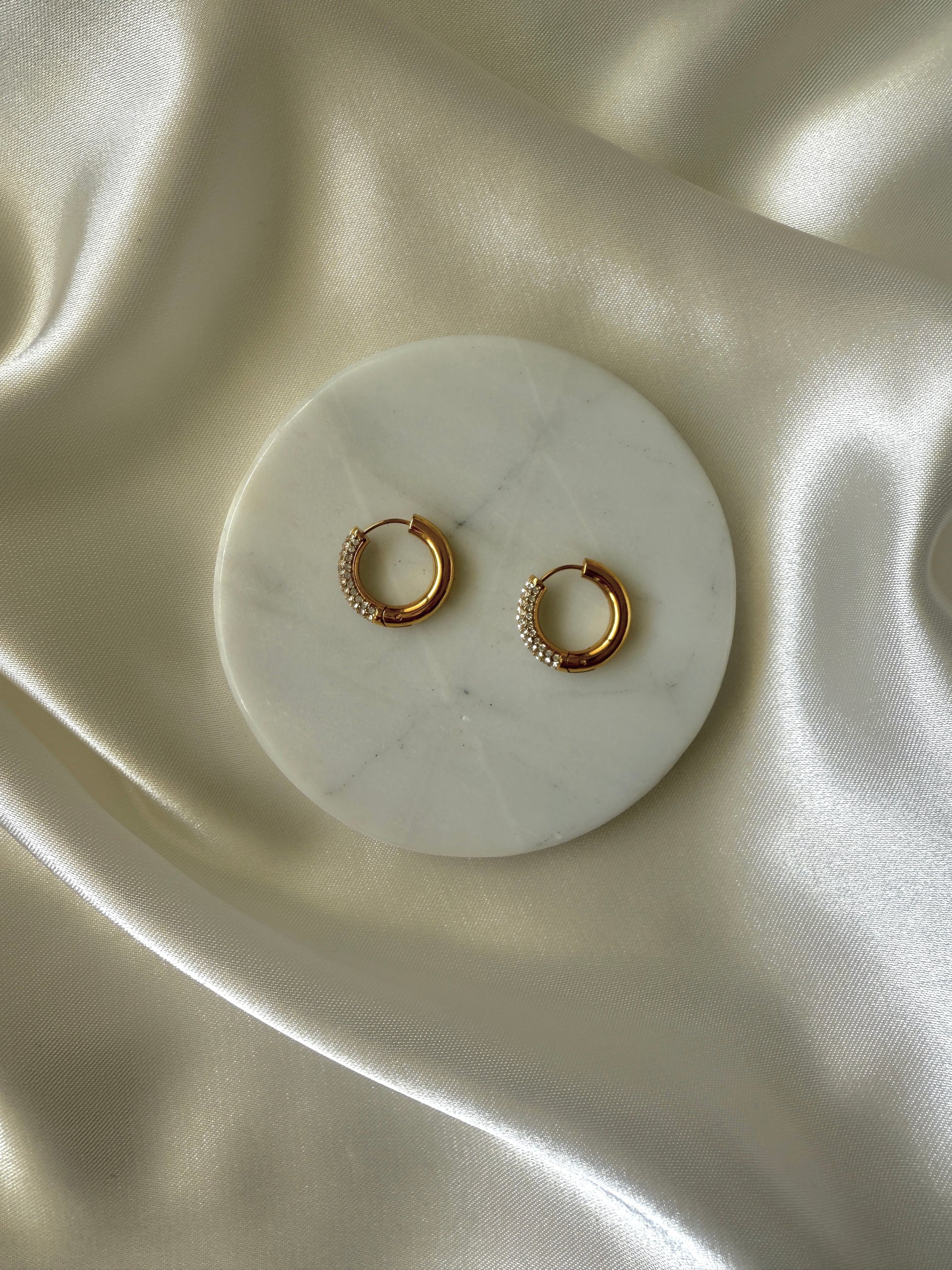 Hoops de titanio 18K, waterproof e hipoalergénicos con incrustaciones de circonias, ideales para pieles sensibles.