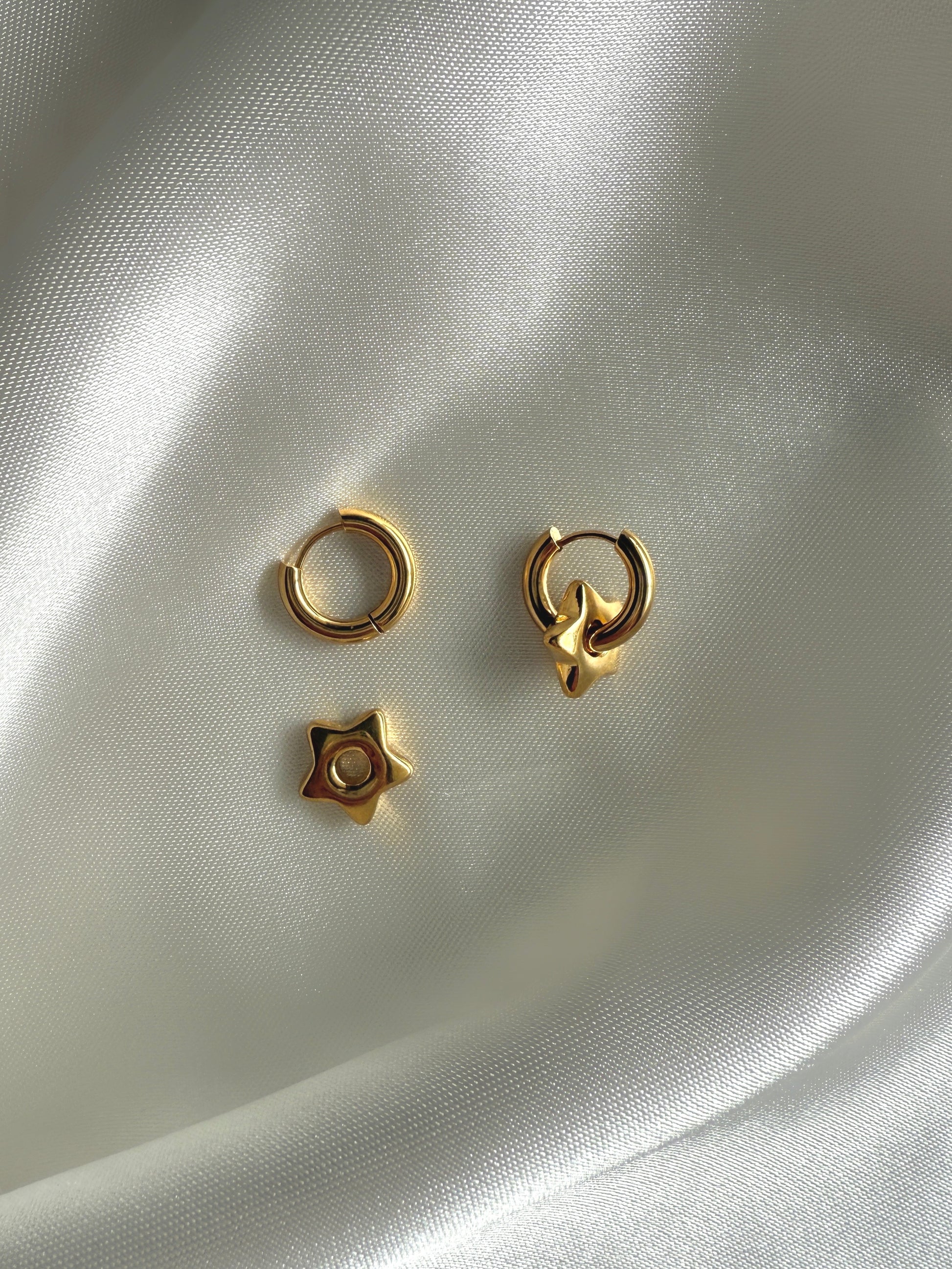 Hoops de titanio 18K, waterproof e hipoalergénicos, ideales para pieles sensibles. Llevan dijes de titanio en forma de estrella.